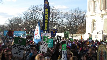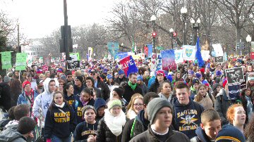 The March For Life represents a gathering of citizens from all parts of the United States and world who peacefully demonstrate their opposition to the decision made by the Supreme Court on January 22nd in 1973 to legalize abortion.  Since that year, more than 60 million human babies have been murdered in the United States of America.  The March For Life welcomes individuals and organizations of every faith and country to gather in Washington, D.C., and other cities to publicly voice their opposition to this decision which deprives unborn children of their rights.