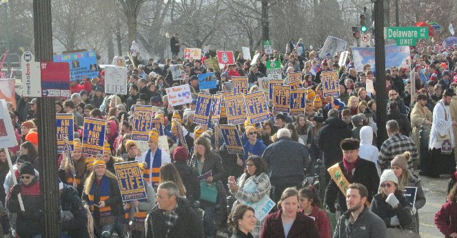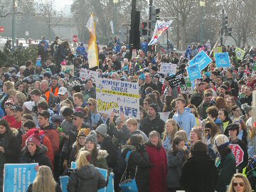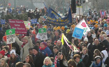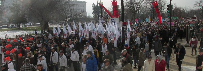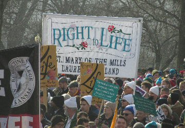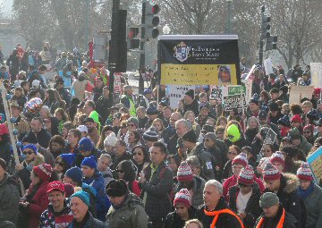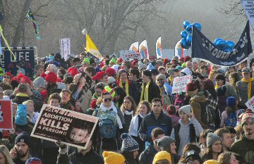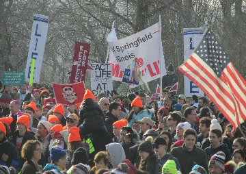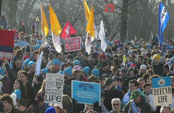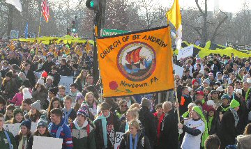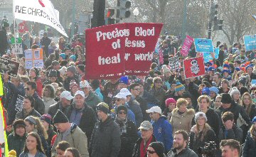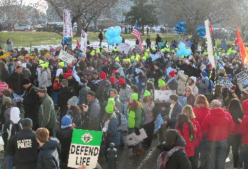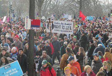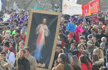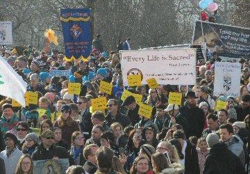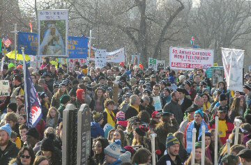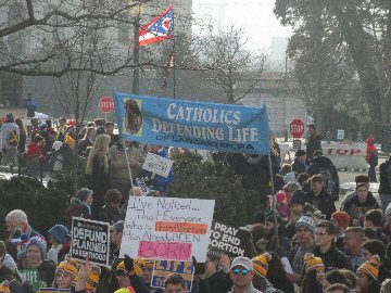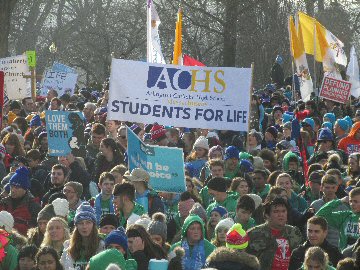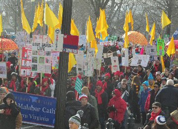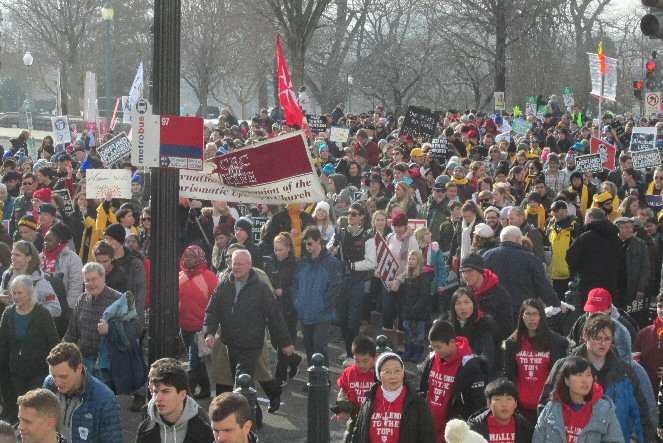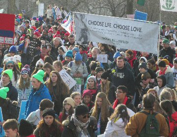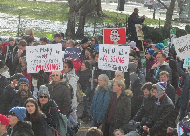 A week before the March For Life in 2019, the Washington Area suffered its first winter storm. The snow had just melted but there were news reports that more was coming. The morning was cloudy, but soon the clouds parted and the sun gave warmth to the marchers, some of whom had traveled many miles and represented many pro-life organizations. Everyone was united with the conviction that abortion results in the death of an unborn person. The rally before the march heard comments by President Trump who addressed them. Their presence showed opposition to the Supreme Court's decision that has allowed more than one million unborn babies to be murdered in the United States of America alone each year. Let us ask the Good Lord for courage and his strength to turn this decision around.