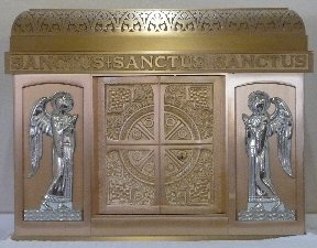 The Priest Approaches and Kisses the Altar: The altar is a symbol of Christ. In it are cut five crosses to recall the five wounds of Christ. The altar also represents the Church and has embedded in it the relics of her saints. The priest comes to the altar to celebrate the Sacrifice in the Church's name. Because of the glory surrounding the altar upon which the divine Sacrifice will be made, the kiss of the priest unites the Church to Christ, its Redeemer.