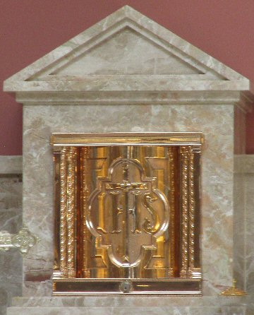 The Priest Approaches and Kisses the Altar: The altar is a symbol of Christ. In it are cut five crosses to recall the five wounds of Christ. The altar also represents the Church and has embedded in it the relics of her saints. The priest comes to the altar to celebrate the Sacrifice in the Church's name. Because of the glory surrounding the altar upon which the divine Sacrifice will be made, the kiss of the priest unites the Church to Christ, its Redeemer.